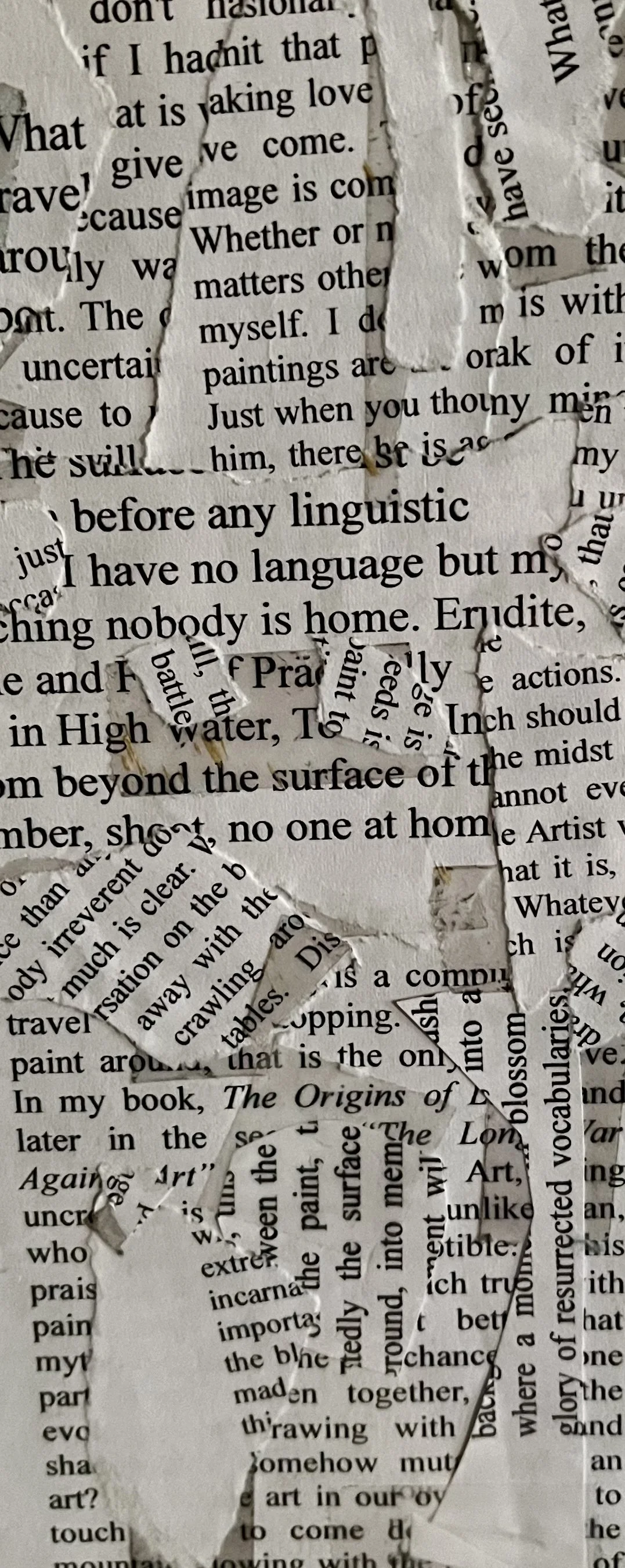 Speaking in a Dead Language. Text Collage on Paper. 4" x 8".