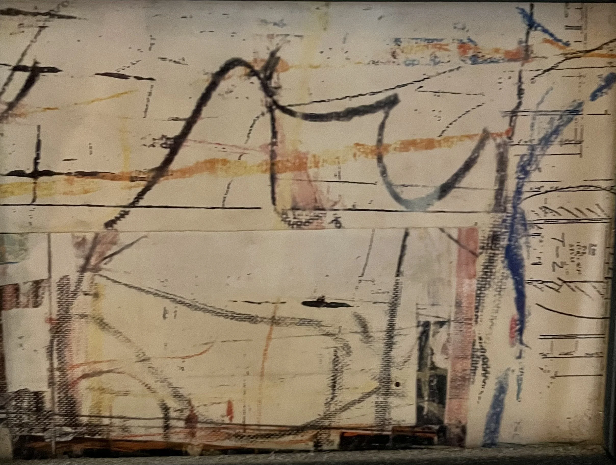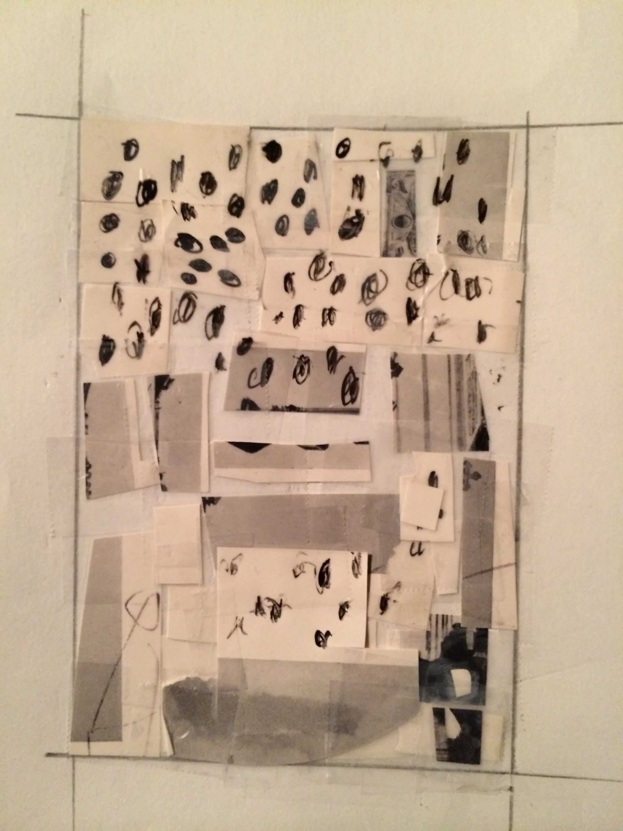 Station Moving. Paint & Collage on Paper (detail). 3" x 5".