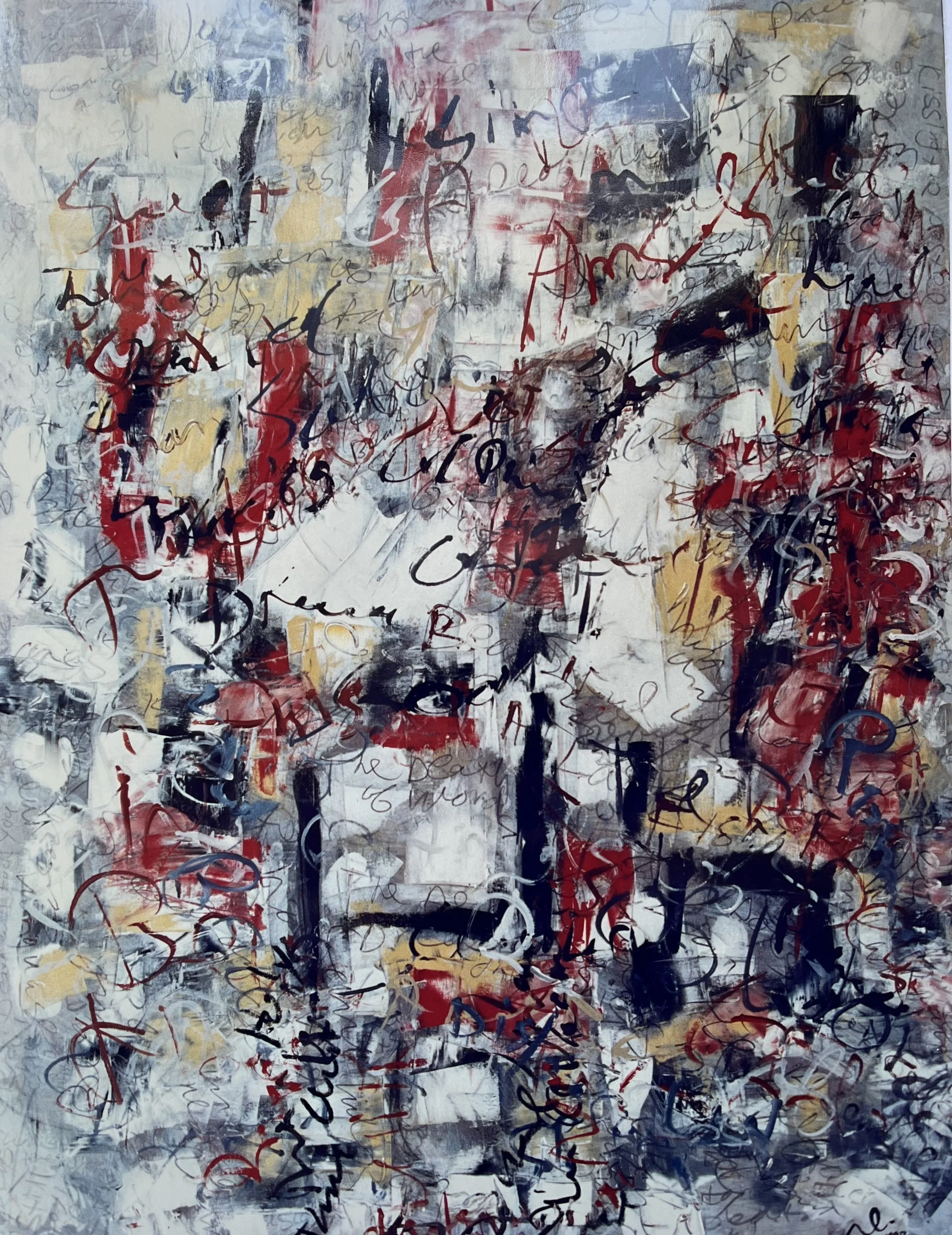 La Madonna Arte 10. Oil on Paper with Text mounted on Canvas. 18" x 24".