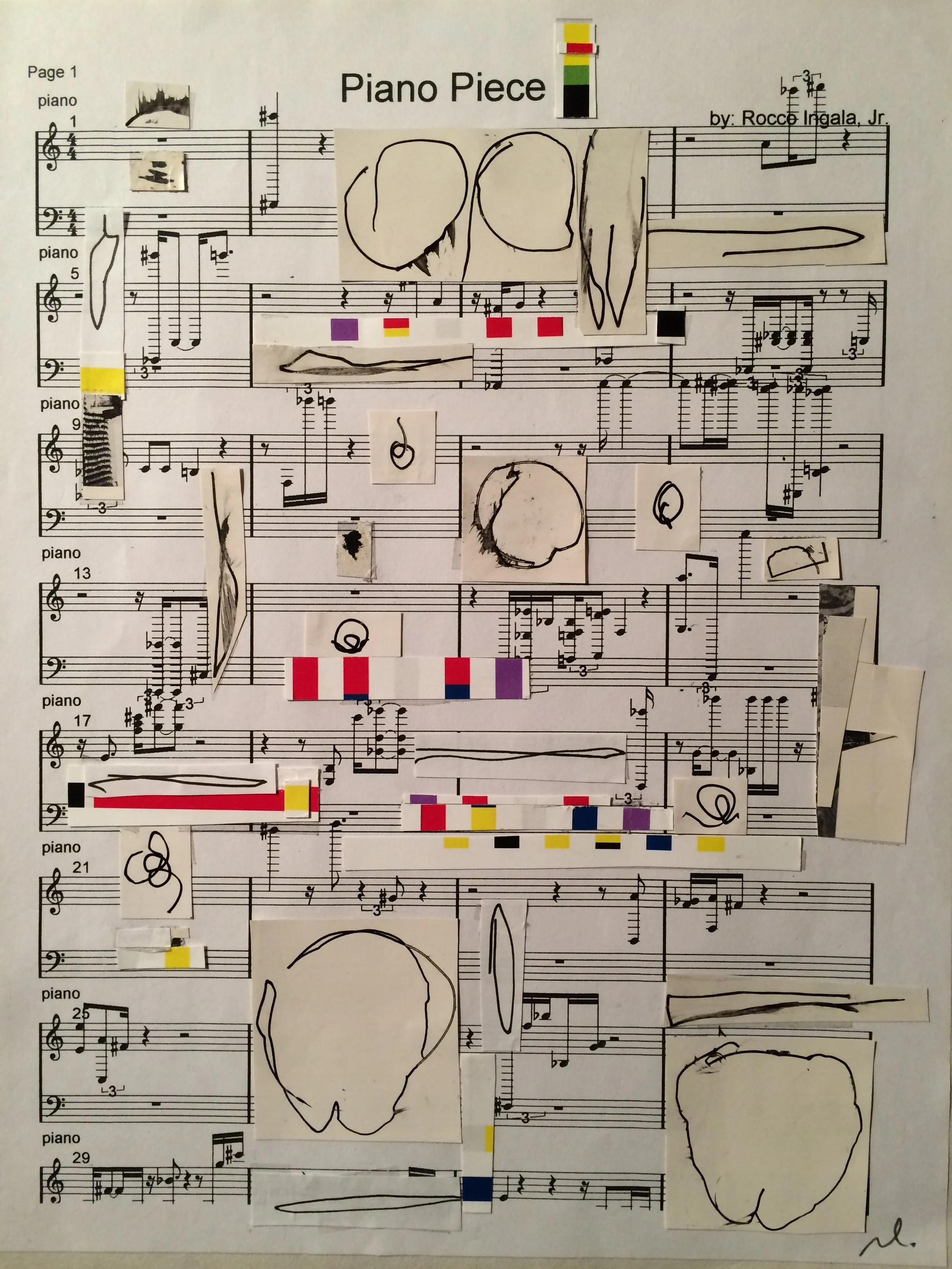 Piano Piece. Original Music Score Art. Music and Art Collage on Paper. 8 1/2" x 11".