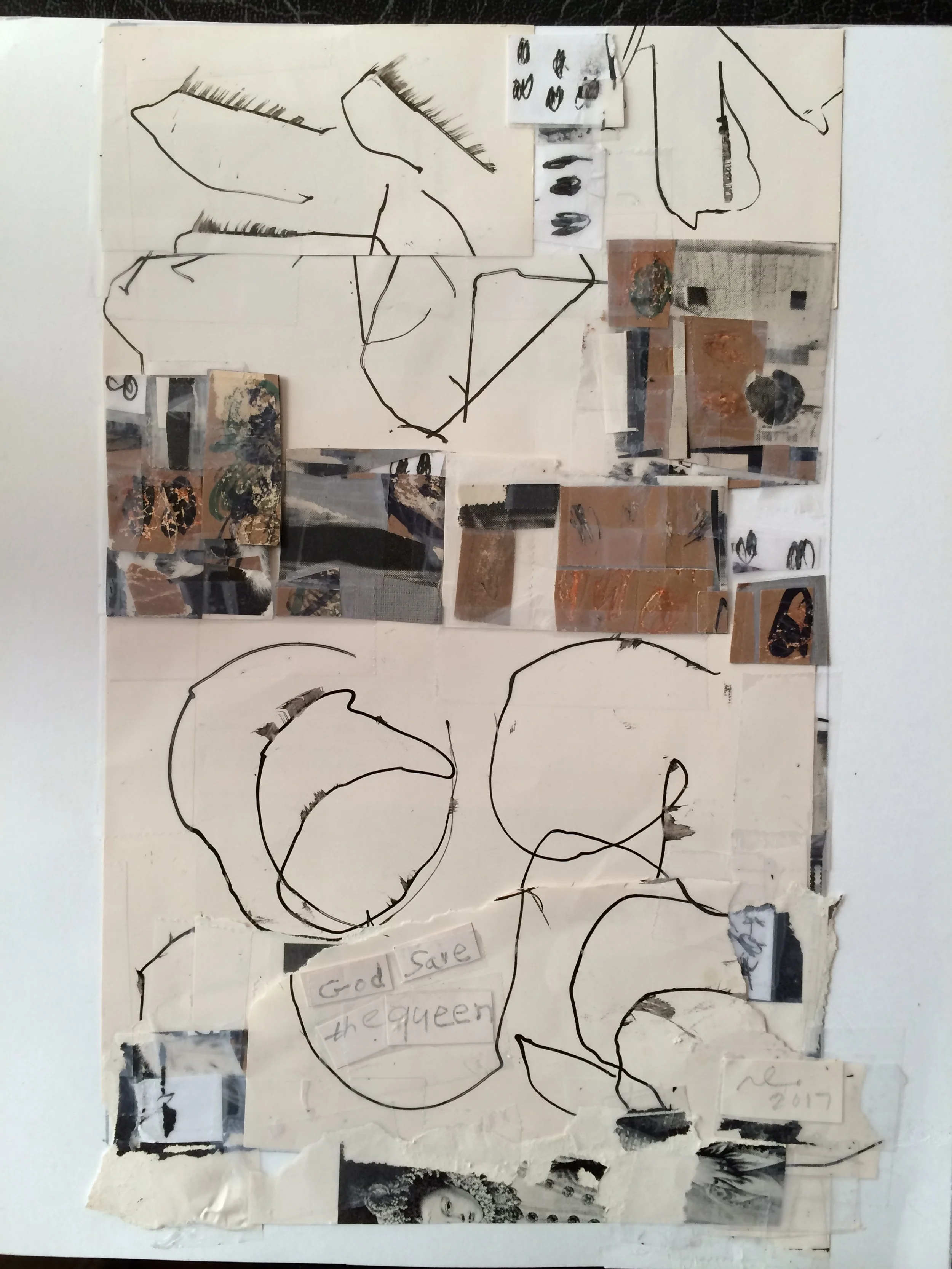 Bonga-Terra. Ink & Collage on Paper. 4 1/2" x 5".
