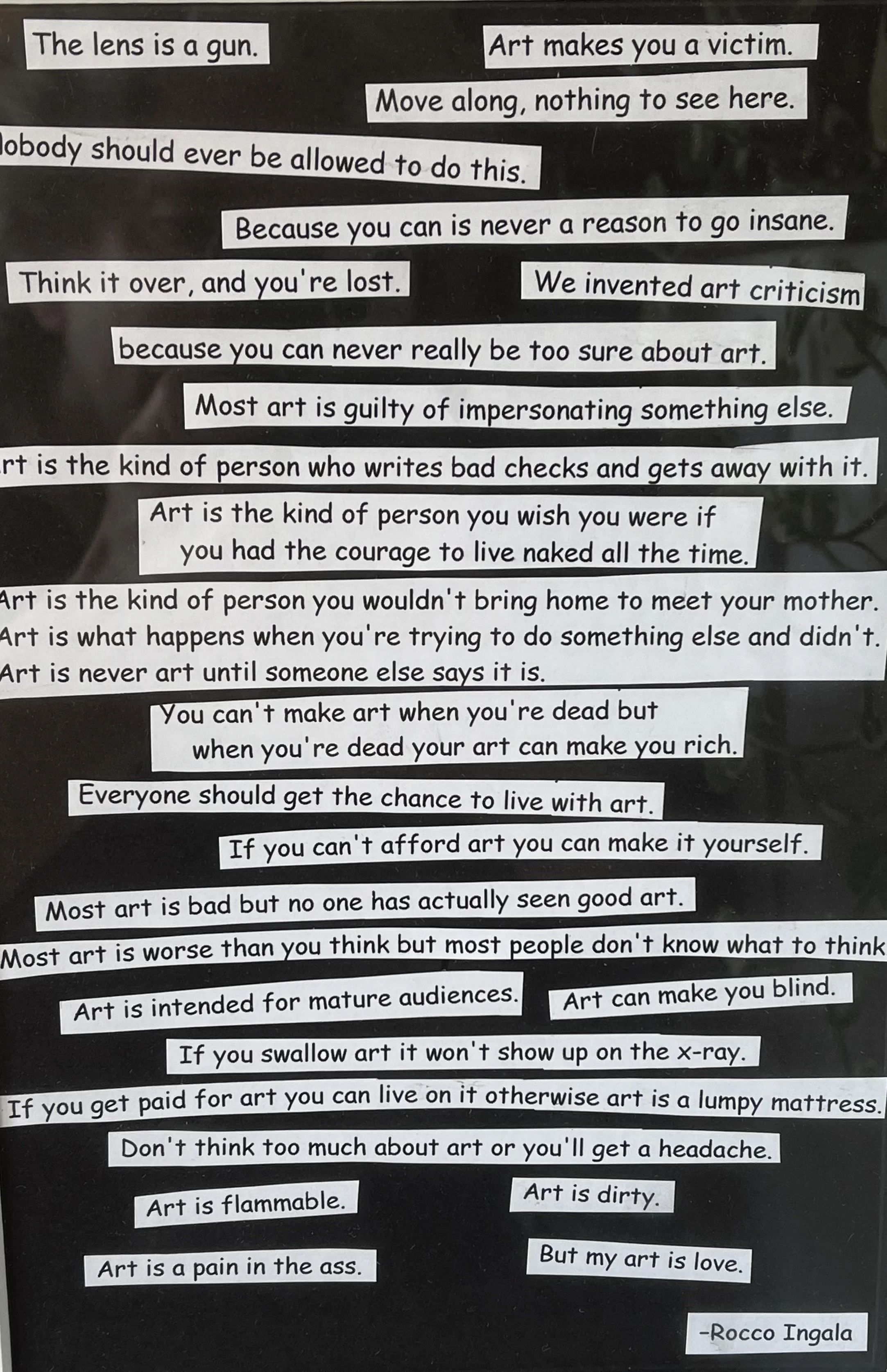 Why are you looking here? The Art you are looking for is not here, not here within this frame. The Art you see is always just a little bit outside the picture. Where is Art? Art is not here, but will always be somewhere over there.