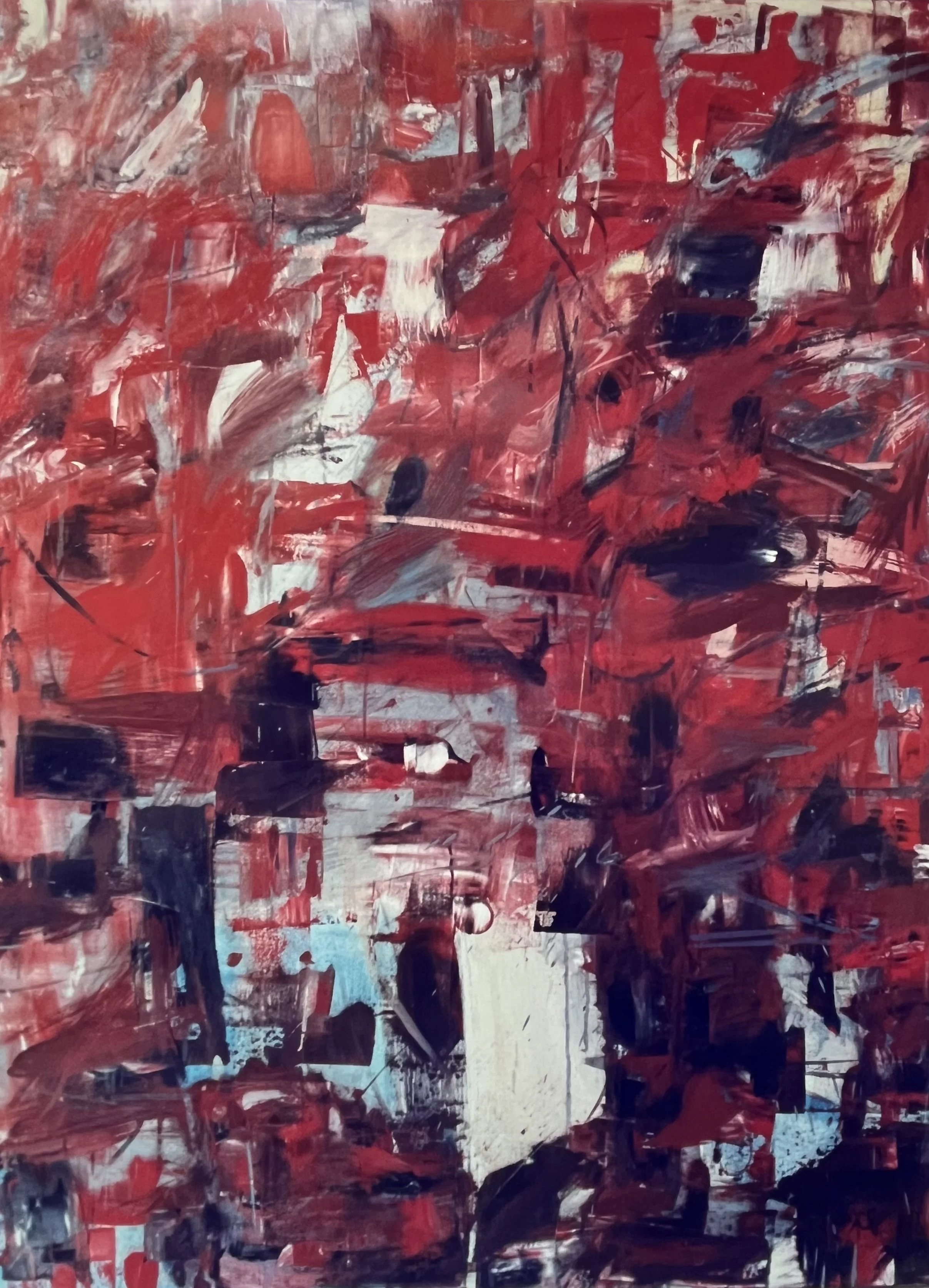 I must act before thinking decides that I could be doing something else. So, painting is what happens when I haven't thought of anything else to do and somehow ended up here before this canvas with no place else to go.